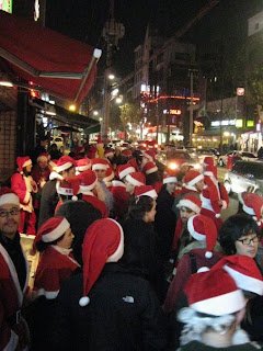 I have to admit that I was feeling a little homesick, remminiscing on all those good times as I choked down the school's octopus soup and kimchi, knowing that the only thing I could think of to be thankful for that day was the 2lb bag of frozen mondu in my freezer. Just as I was about to put an end to my despair on the nearest subway tracks, redemtion came in the form of a Facebook message from MB informing me that there was a full-blown Thanksgiving dinner in Bundang. I didn't have to be told twice. Stuffing my face with fellow English speakers was exactly what I had been hoping for and the spread at Mia's house far exceeded my expectations. Mac-n-Cheese, mashed potatoes, stuffing, more pumpkin pie than 28 people could even begin to eat, and of course...the turkey. Thick, grey chunks of moist, dark meat and sinewy slices of white. It was heaven on a paper plate. As I enjoyed the evening with a multi-national crew of new and old friends alike it occured to me how blessed I am to have such wonderful people and such a wondeful country in my life. I think that on this Thanksgiving I genuinely had more to be thankful for than on any previous year.